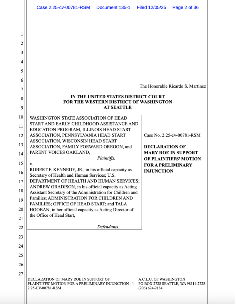 The list was submitted on Dec. 5, as part of an ongoing lawsuit filed by Head Start programs in a handful of states – including Pennsylvania, Washington, Wisconsin and Illinois – against the U.S. Department of Health and Human Services (HHS) and its secretary, Robert F. Kennedy Jr.